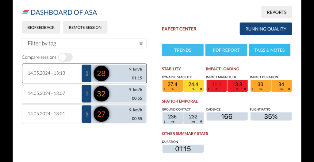 During the analysis, you’ll run on a treadmill while our system captures real-time data on your biomechanics using the Runeasi 3D sensor. This unique sensor and technology can capture the effect of running impacts on your body in real-time, detecting the presence of overload, asymmetry and poor movement control that causes injuries and hampers performance.